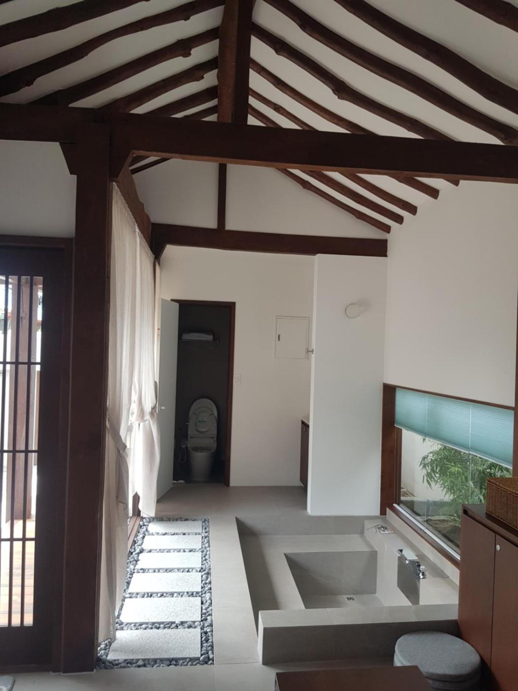 Family Room. The hot tub is the standout feature of this family room. The family room includes a private bathroom, well-fitted with a bath, a shower, a bidet, a hairdryer and slippers. This air-conditioned family room comes with a dining area, a flat-screen TV with streaming services a tea and coffee maker and a wardrobe. The unit has 1 bed and 3 futons.